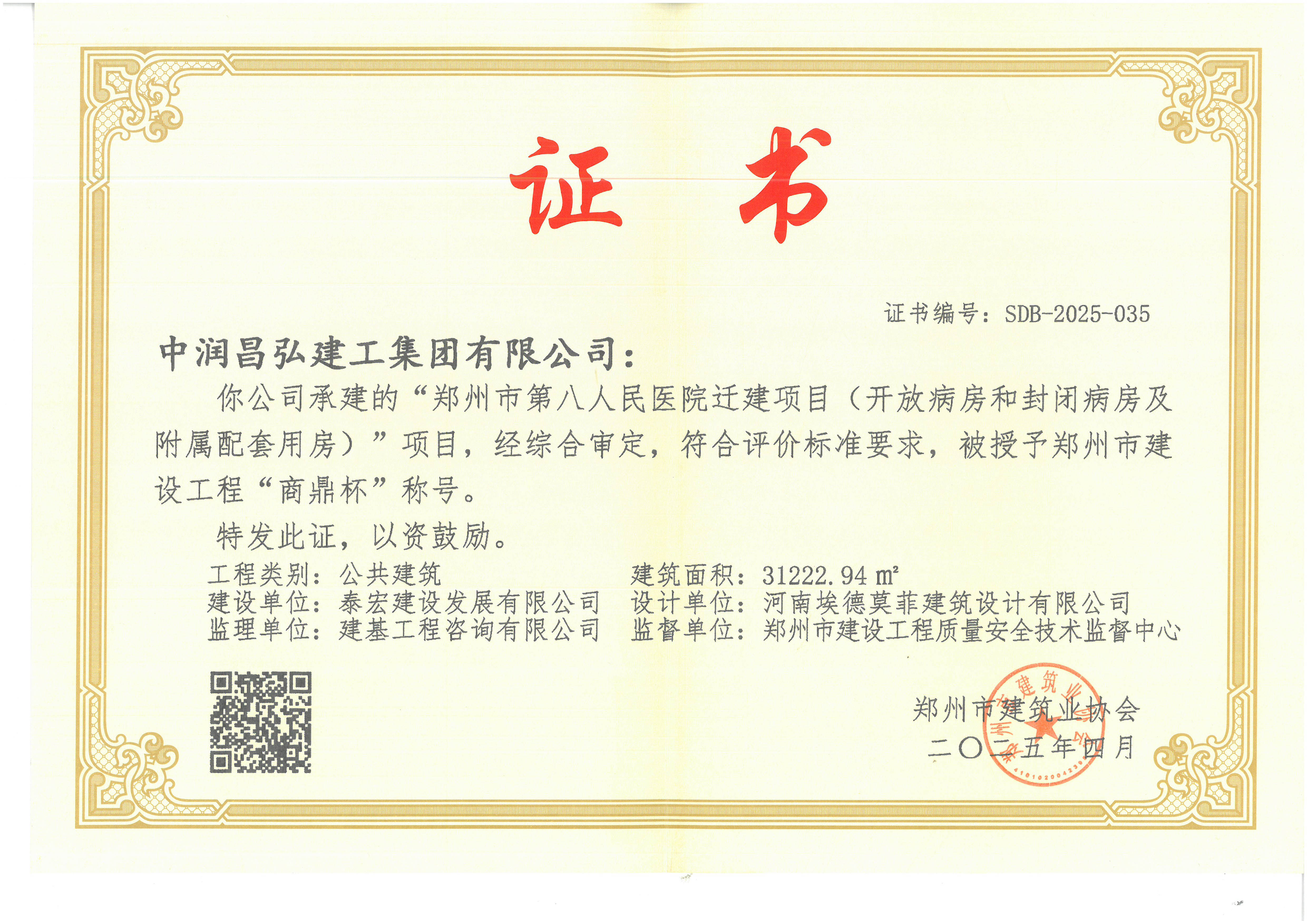 泰宏建设三项省市重点工程荣获郑州市建设工程“商鼎杯”